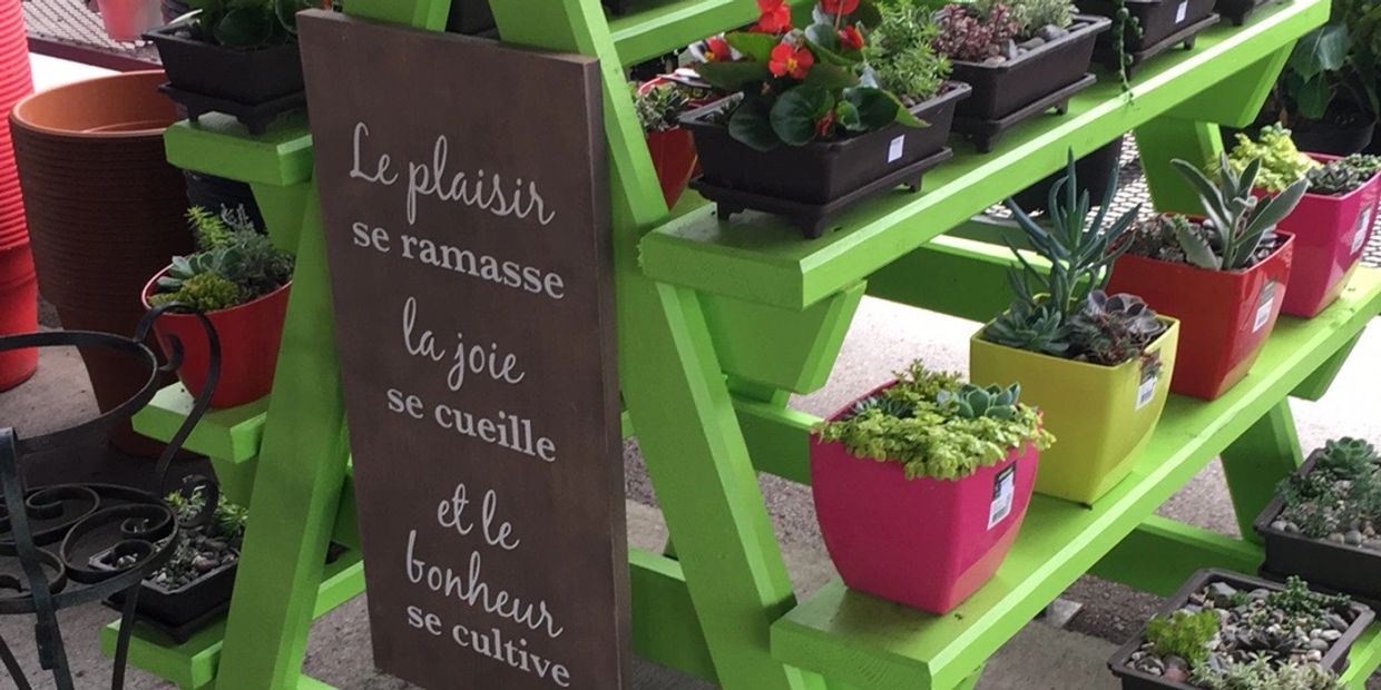 Nous offrons une grande variété de produits incluant une centaine de fleurs annuelles et vivaces différentes, de magnifiques plantes d'intérieur, des plants de légumes et de fines herbes, de magnifiques paniers suspendus et pots décos, des arrangements de succulentes et de jolies potées fleuries !